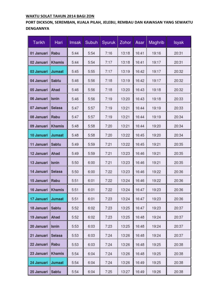 Tambahkan makmuman mengikut imam jika sembahyang berjemaah. Real time prayer alerts for port dickson. Jadual Waktu Solat Seremban Waktu solat adalah peruntukan tempoh atau selang masa tertentu bagi masyarakat muslim menjalani syariat solat sama ada fardhu ataupun sunat.